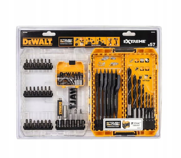 57-elementowy do wiercenia i wkręcania z wiertłami z końcówkami centrującymi i wiertłami piórkowymi do drewna Extreme DT70758-QZ DeWALT