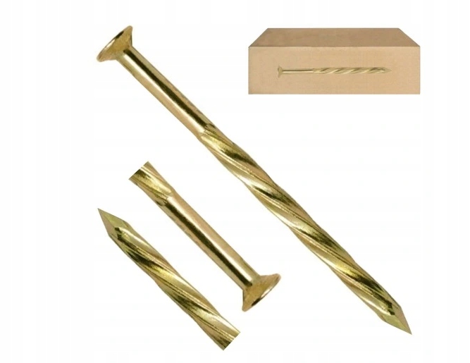 Gwoździe Papowe Skręcane Ocynkowane TRÓJKA wykonane są z twardego metalu trzpień zaostrzony z jednej strony, z drugiej zakończony płaskim powiększonym łbem. Gwóźdź służy do mocowania gontów bitumicznych pokryć dachowych, fasad z tworzyw sztucznych do konstrukcji drewnianych, płytek łupkowych. Połączenie jest utrzymywane dzięki siłom tarcia działającym wzdłuż osi gwoździa oraz dzięki sztywności trzpienia. Gwoździe wykonywane są ze stalowego drutu wysokiej jakości, a dzięki procesowi galwanizacji są odporne na warunki atmosferyczne.