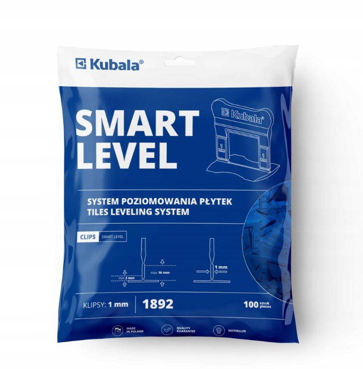 Klipsy do poziomowania płytek 1mm SMART LEVEL 100 szt. 1892 Kubala