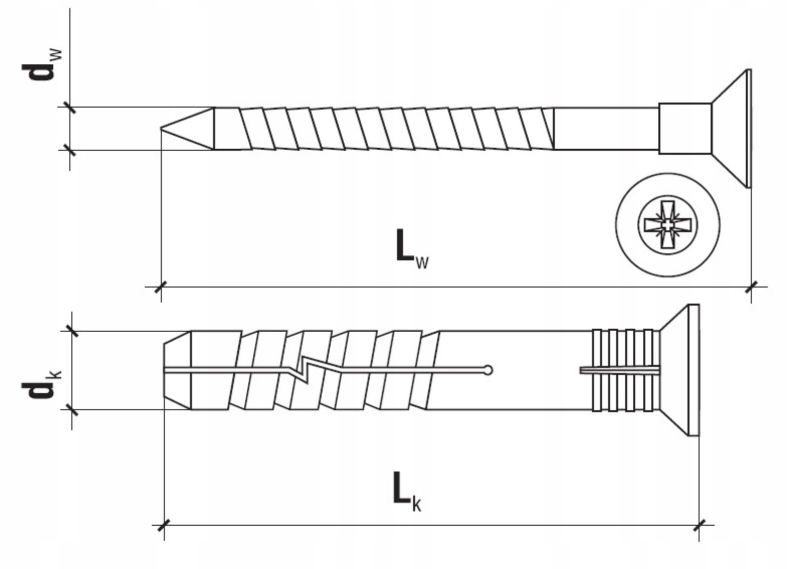 - Zwiększona średnica głowy zapewnia znacznie lepszy docisk montowanych elementów.