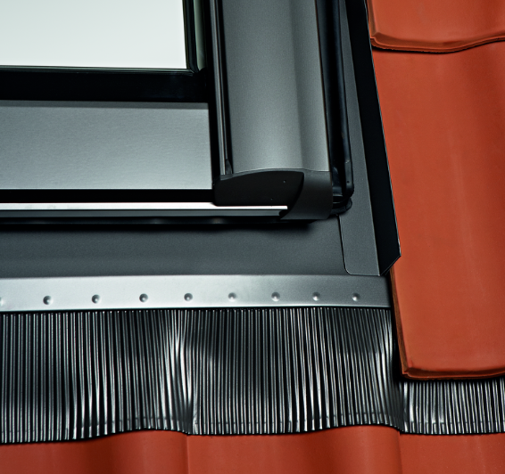 Kołnierz uszczelniający Designo EDZ pozwala na szczelny i szybki montaż okien Designo na dachach z pokryciem falistym. Przykładowe pokrycia: dachówka ceramiczna, dachówka betonowa, blachodachówka