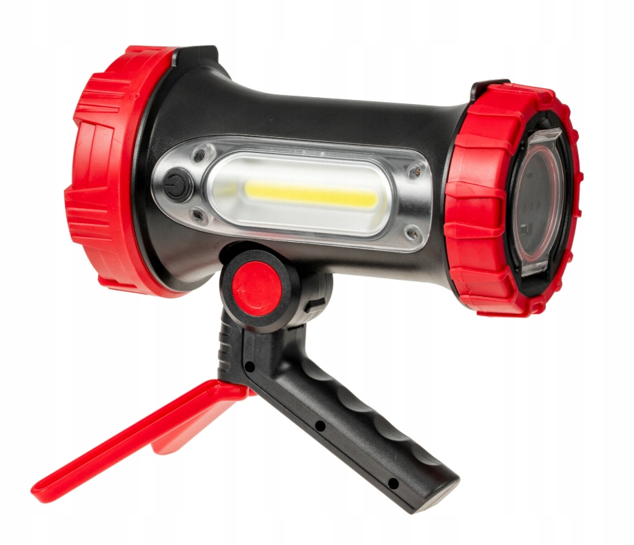 • Latarka posiada ruchomy uchwyt z możliwością rozłożenia i przekształcenie rączki w stojak.