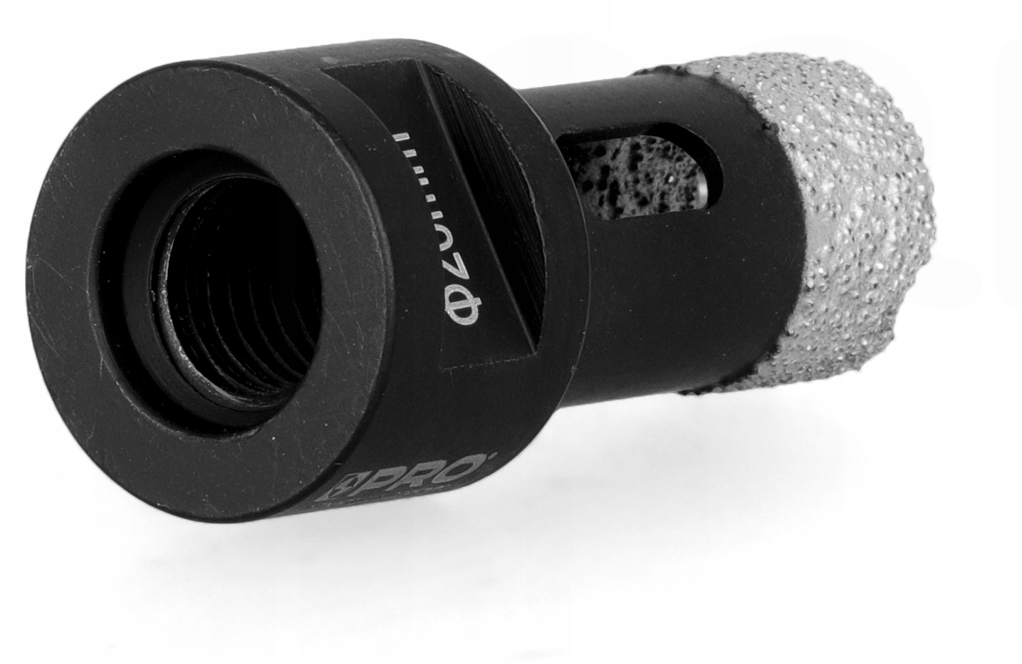 Została wykonana z wysokiej jakości stali węglowej. Jej część roboczą stanowi bardzo drobny i gęsty nasyp diamentowy lutowany próżniowo do walcowego stalowego korpusu. Specjalnie opracowany diamentowy rdzeń wiertniczy pozwoli na wiercenie nawet najtwardszych materiałów. Wrzeciono mocujące M14 umożliwiające bezpośredni montaż na szlifierce kątowej.