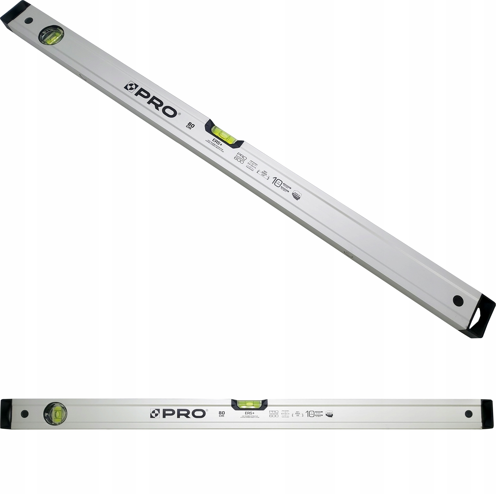 - Nowoczesna libella poziomu zapewniająca łatwy i szybki odczyt, bez względu na kąt patrzenia.
