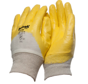 Rękawice bawełniane, dłoń powleczona żółtym nitrylem.