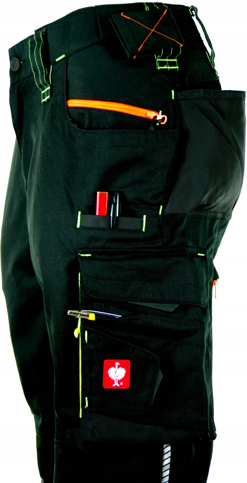✔️ wzmocniona, funkcjonalna kieszeń na linijkę i wieloczęściowa kieszeń na udzie