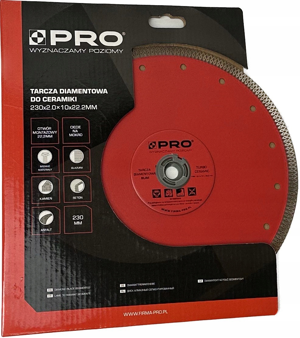 Tarcza diamentowa do cięcia pełna 230x2x22,2mm PRO