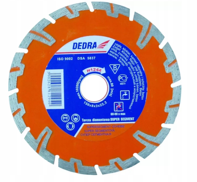 Tarcza diamentowa super turbo do cięcia betonu zbrojonego, kamienia, ceramiki DEDRA H1243 125mmx22,2mm