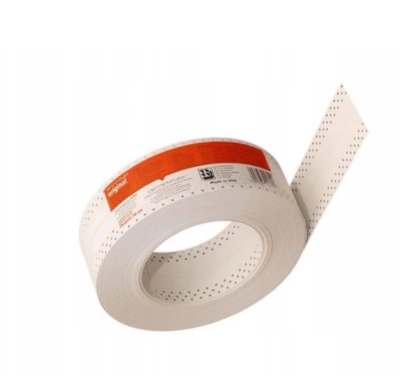 - Obróbka taśmy za pomocą szpachelki, podczas wklejania, powinna ograniczyć się do 3-4 przeciągnięć szpachelką, w celu rozprowadzenia masy pod taśmą, zebrania nadmiaru masy oraz wyrównania płaszczyzny. Po wyschnięciu masy gipsowej, na którą została zainstalowana taśma, pokryj taśmę cienką warstwą masy gipsowej za pomocą szerokiej szpachelki, wyrównując z płaszczyzną ściany i pozostaw do wyschnięcia. W razie potrzeby zastosuj kolejną warstwę masy gipsowej i pozostaw do wyschnięcia. Całkowita grubość wszystkich nałożonych warstw gipsu na taśmę nie powinna przekroczyć 0,6 mm. Jeśli całkowita grubość nałożonych warstw przekracza 0,6 mm to należy zniwelować ją papierem ściernym.