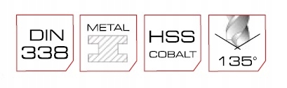 - Wiertło spiralne z wysokiej jakości stopowej stali szybkotnącej o zawartości kobaltu 5%.