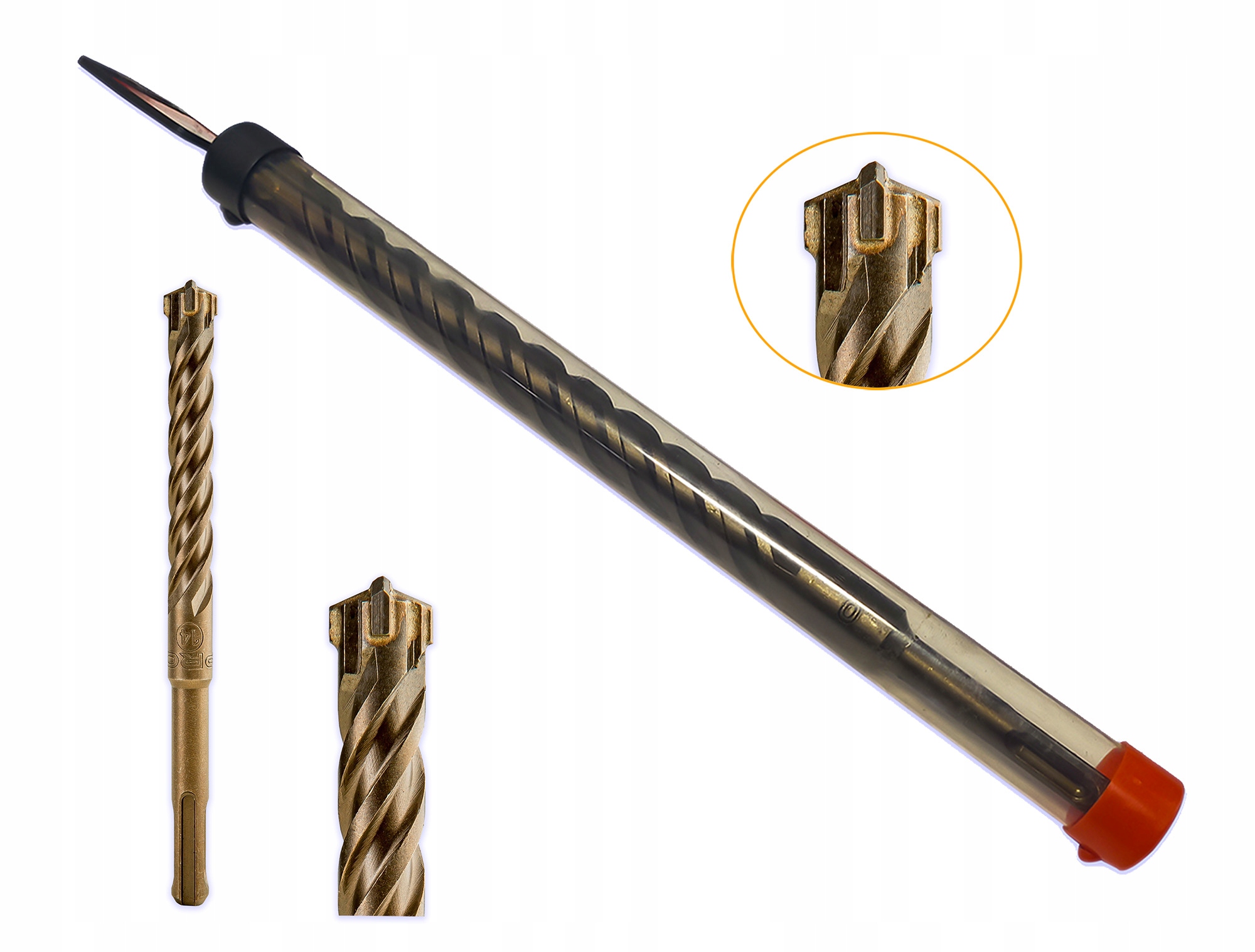 - Wzmocnione skosy spirali zapewniające optymalne wiercenie w przypadku kontaktu wiertła ze zbrojeniem.
