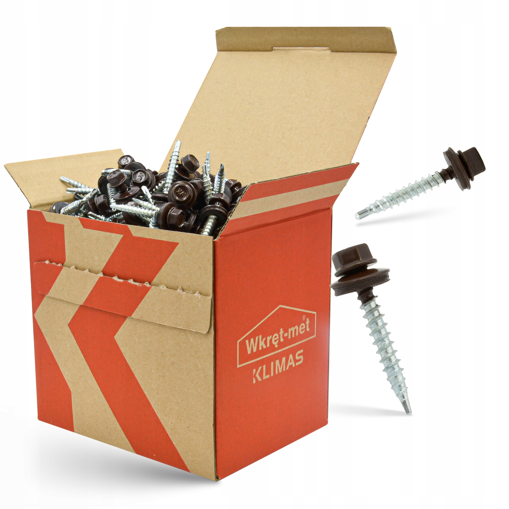 Wkręty farmerskie samowiercące z podkładką EPDM do mocowania blach do podłoża drewnianego 4,8×35 RAL8017 (czekoladowy brąz) 250szt. KLIMAS