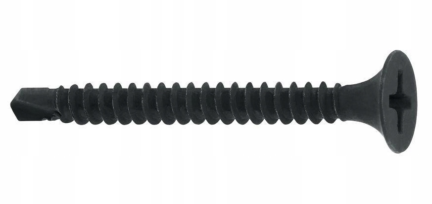 - Konstrukcja gwintu gwarantuje pewne i trwałe mocowanie w podłożu stalowym, (cienkich blachach do gr. ,75 mm). Ostra końcówka ułatwia rozpoczęcie montażu.