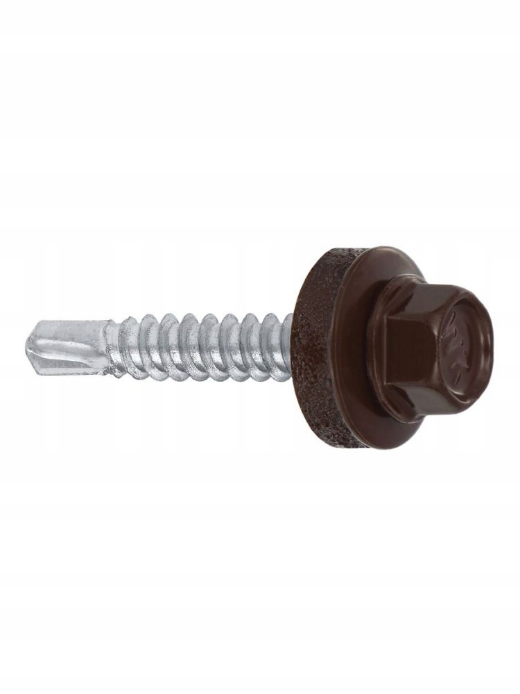 Wkręt samowiercący z podkładką EPDM do mocowania blach do podłoża drewnianego 4,8x25mm 250szt. RAL8017 brąz WFD-48025-8017