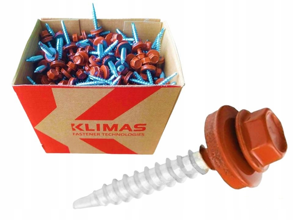 Wkręty farmerskie samowiercące z podkładką EPDM do mocowania blach do podłoża drewnianego 4,8×35 RAL8004 (brąz miedziany) 250szt. KLIMAS