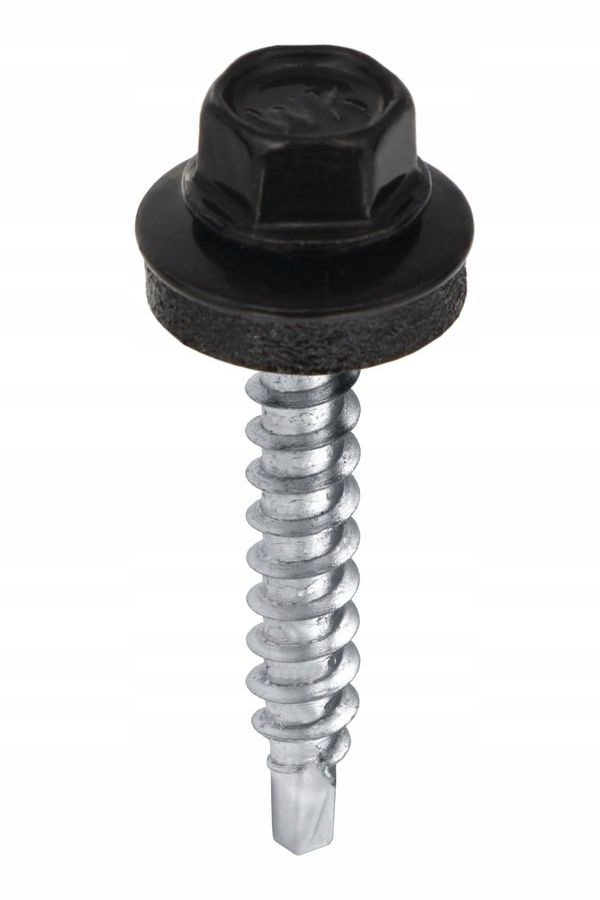 Wkręt samowiercący z podkładką EPDM do mocowania blach do podłoża drewnianego 4,8×35 RAL9005 czarny 250szt. (WFD-48035-9005) WKRĘT-MET