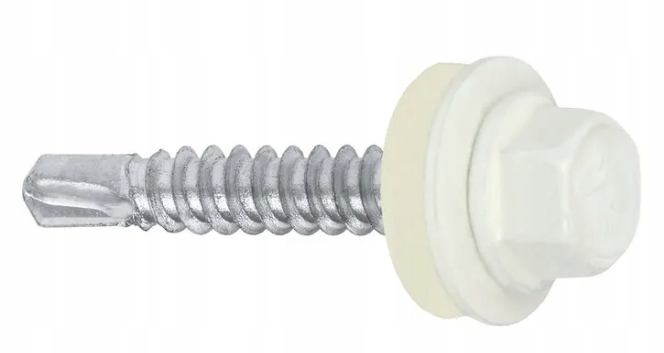 Wkręt samowiercący z podkładką EPDM do mocowania blach do podłoża stalowego 4,8×19 RAL9010 biel alpejska 250szt.