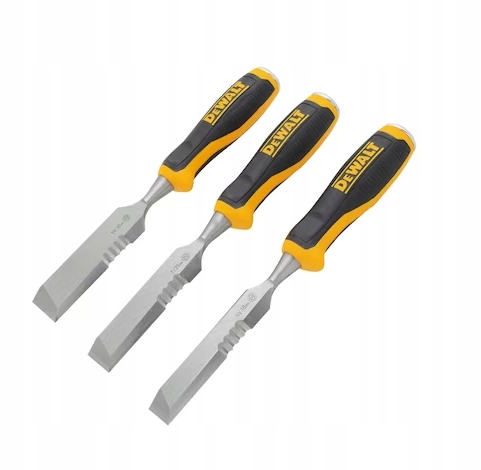 Zestaw 3 dłut DEWALT® zawiera dłuta o szerokościach 18 mm, 25 mm i 32 mm, przeznaczone do różnych zastosowań. Wszystkie trzy dłuta posiadają krawędź tnącą, która może być używana jako skrobak oraz do prac rozbiórkowych. Ostrza wykonane są z hartowanej stali chromowanej, co zapewnia zwiększoną trwałość, a dwumateriałowa rękojeść zapewnia komfort i kontrolę podczas pracy.